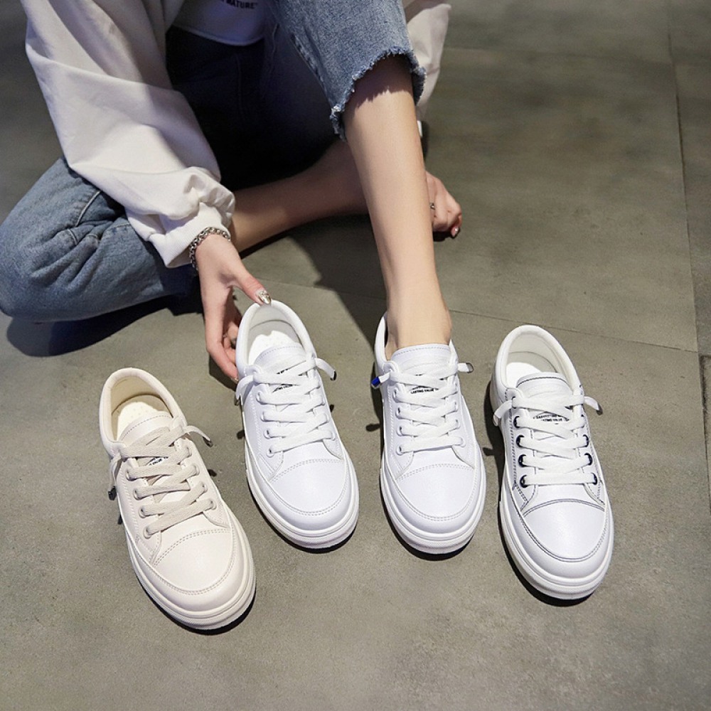 White Shoes Female Spring New Heightening Student Running Board Shoes Breathable Lace