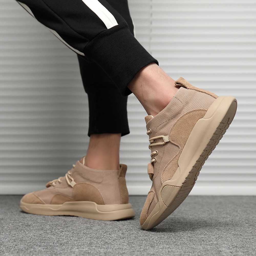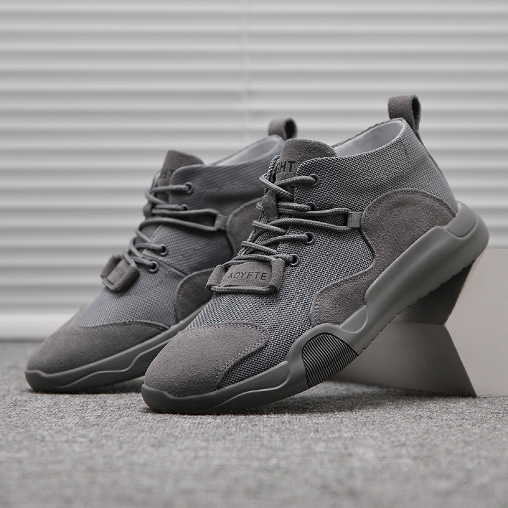 Leather Breathable Mesh Casual Sports Shoes Explosion Models Mesh Stitching Men's Trendy Sneakers