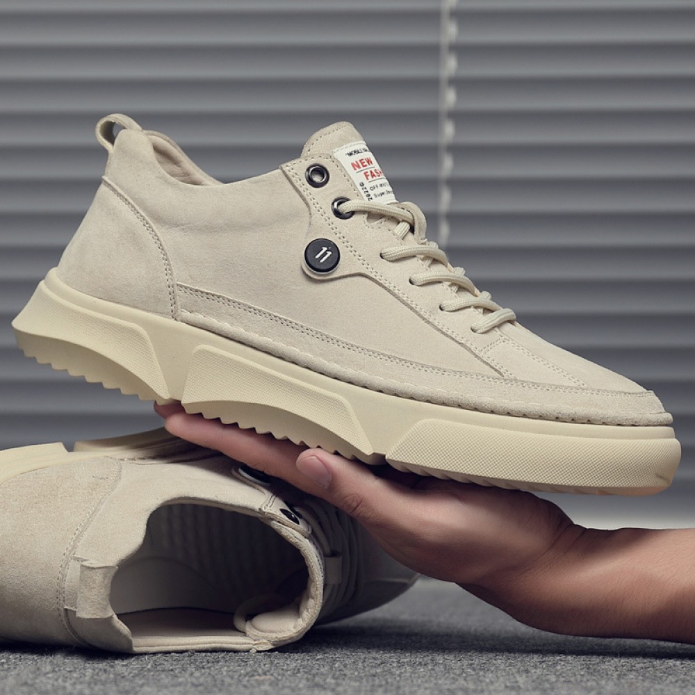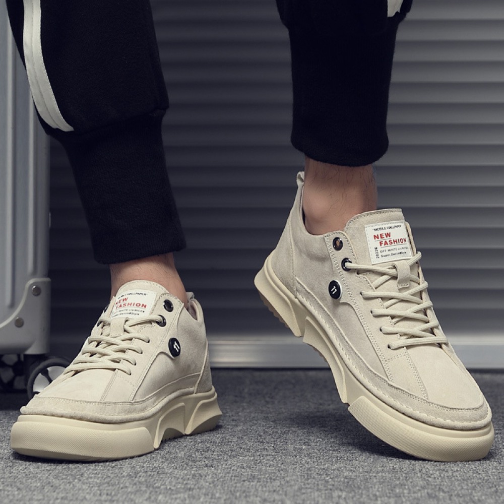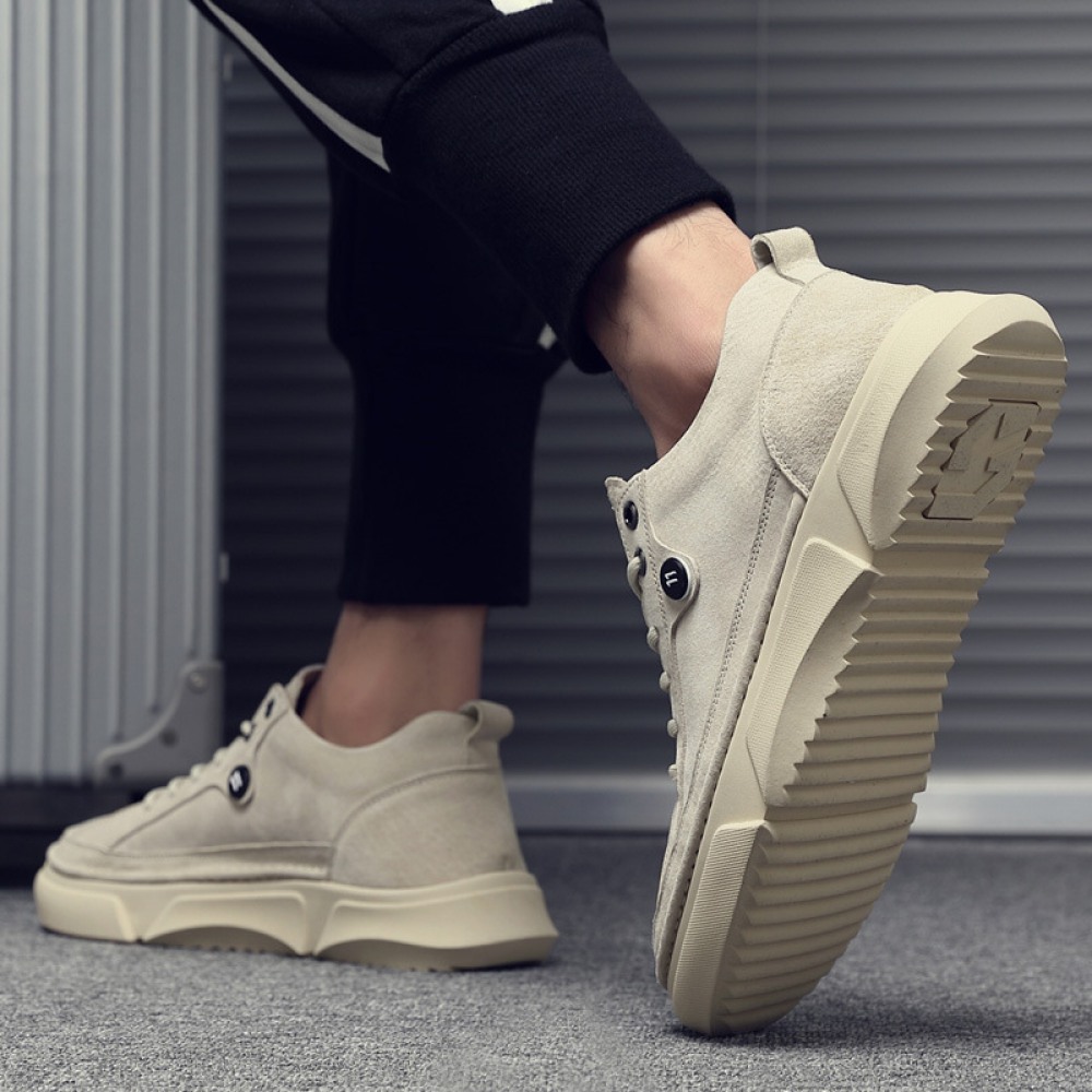 Men's Leather Board Shoes Trendy White Casual Shoes