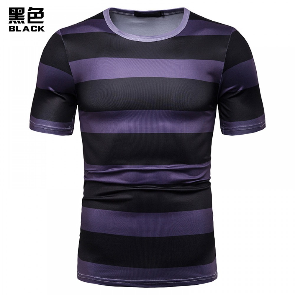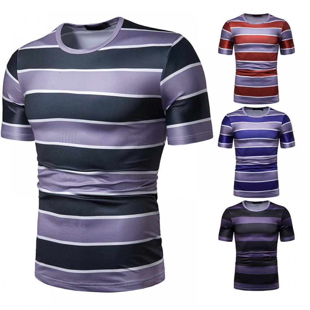 New Summer Men's Short-Sleeved T-Shirt Mens Contrast Striped Slim Casual T-Shirt
