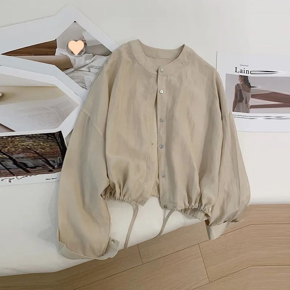 Retro Long Sleeve Shirt Women's Loose Casual Short Top