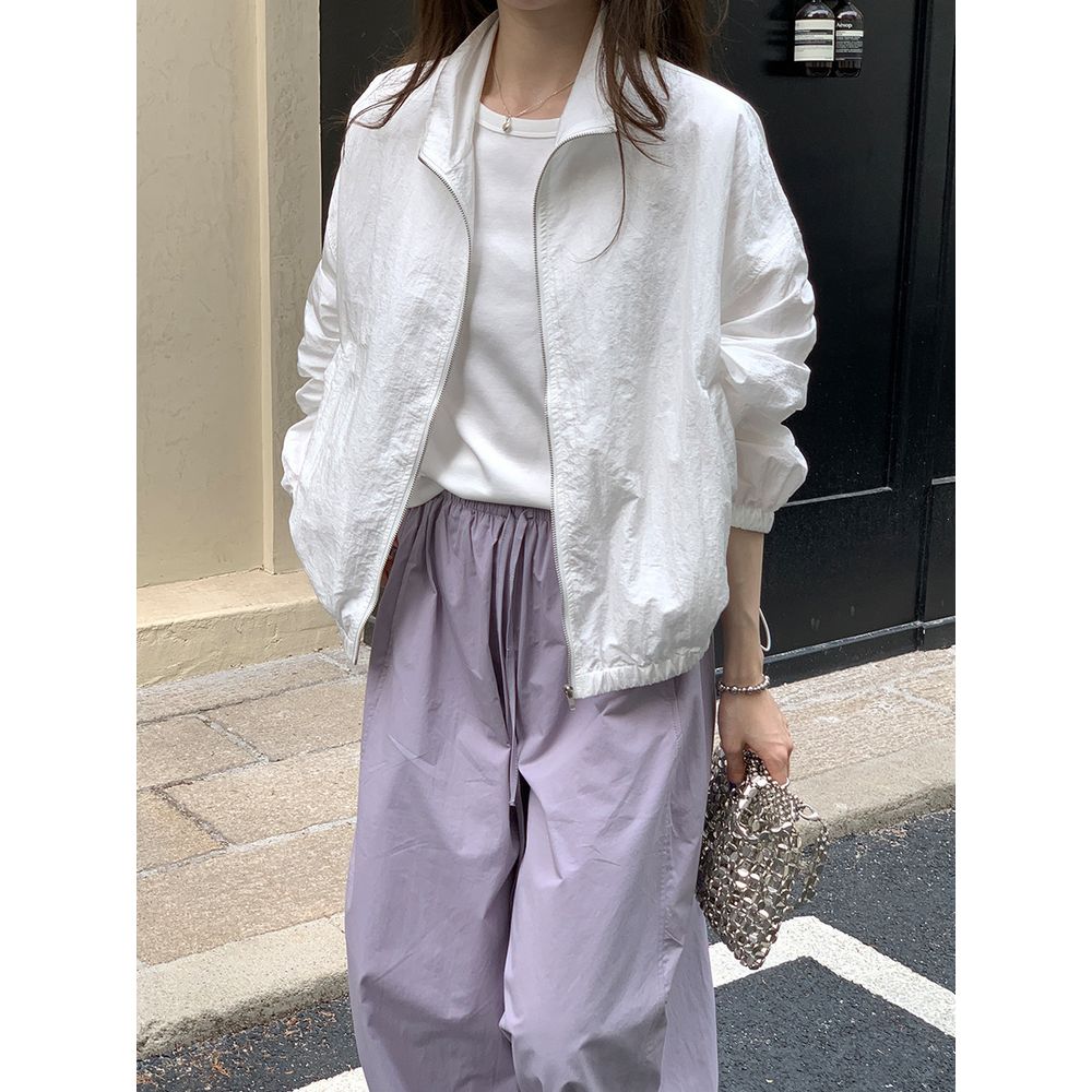 Casual Loose Stand Collar Jacket Women Zipper Cardigan Long Sleeve Jacket Top