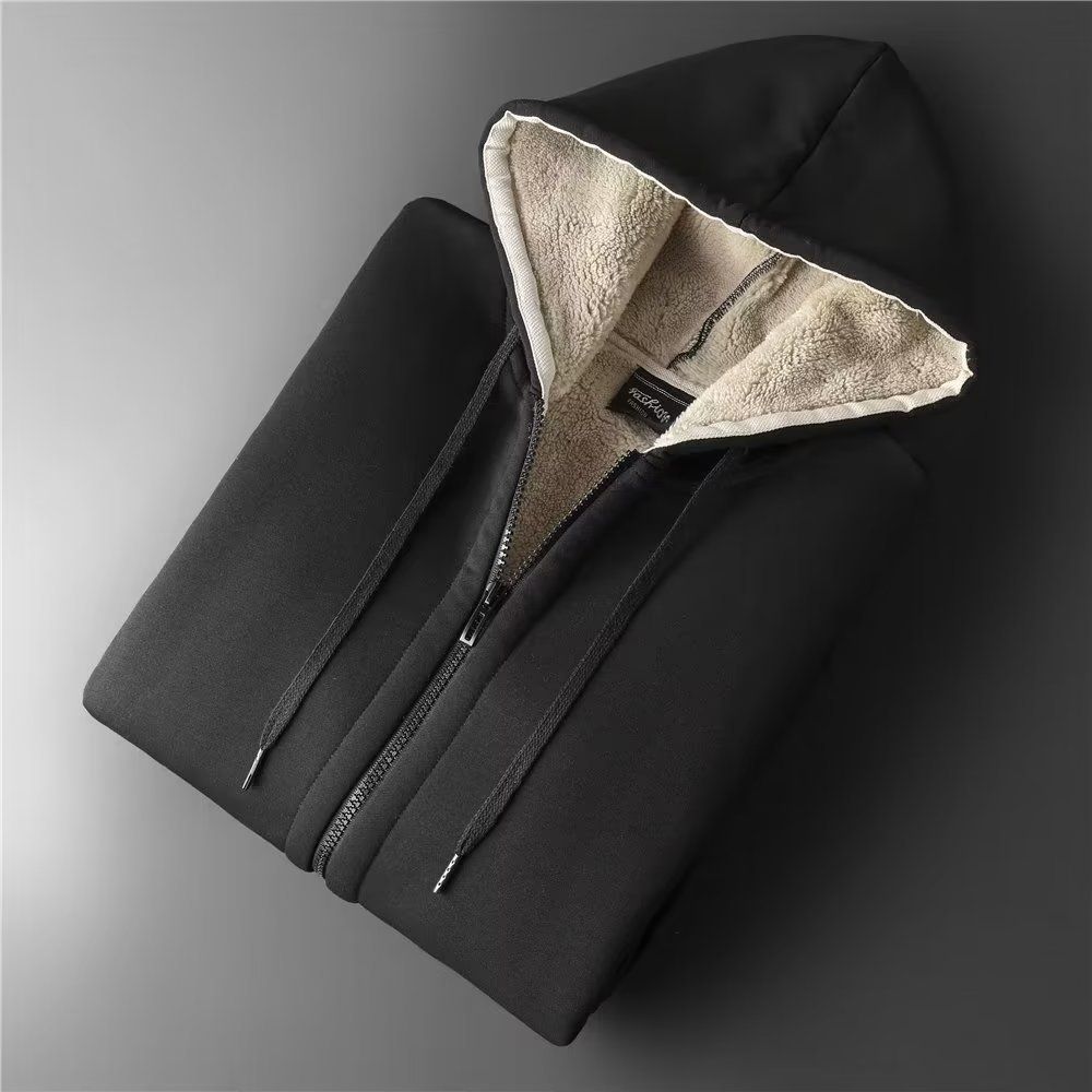 Men's Fleece Thickened Jacket with Zip-up Hood Loose Fit
