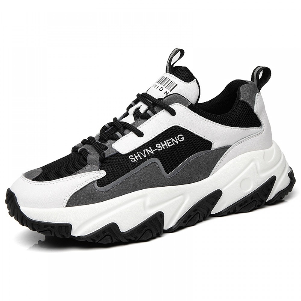 Men's Round Head Shoes Front Lace-Up Mid-Heel Casual Sports Single Shoes