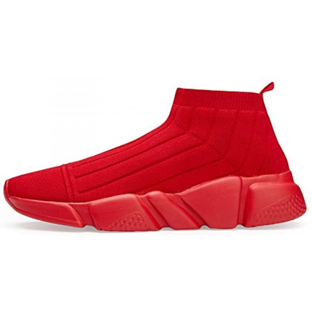 Men's Running Shoes Breathable Knit Slip On Sneakers Lightweight Athletic Casual Sports Shoes All Red