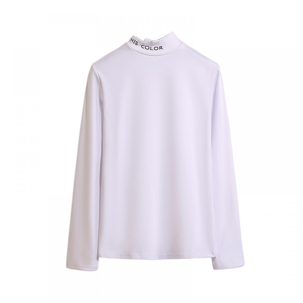 New Fat Long-Sleeved All-Match T-Shirt Loose Round Neck Printing Irregular Half High Collar Bottoming Shirt Women