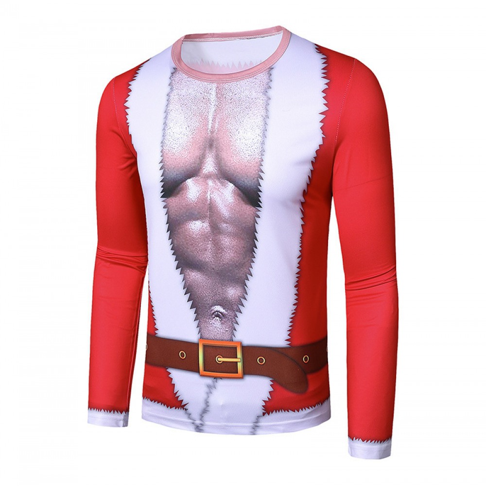 New Men's Round Neck 3D Santa Claus Costume Printing Long-Sleeved T-Shirt