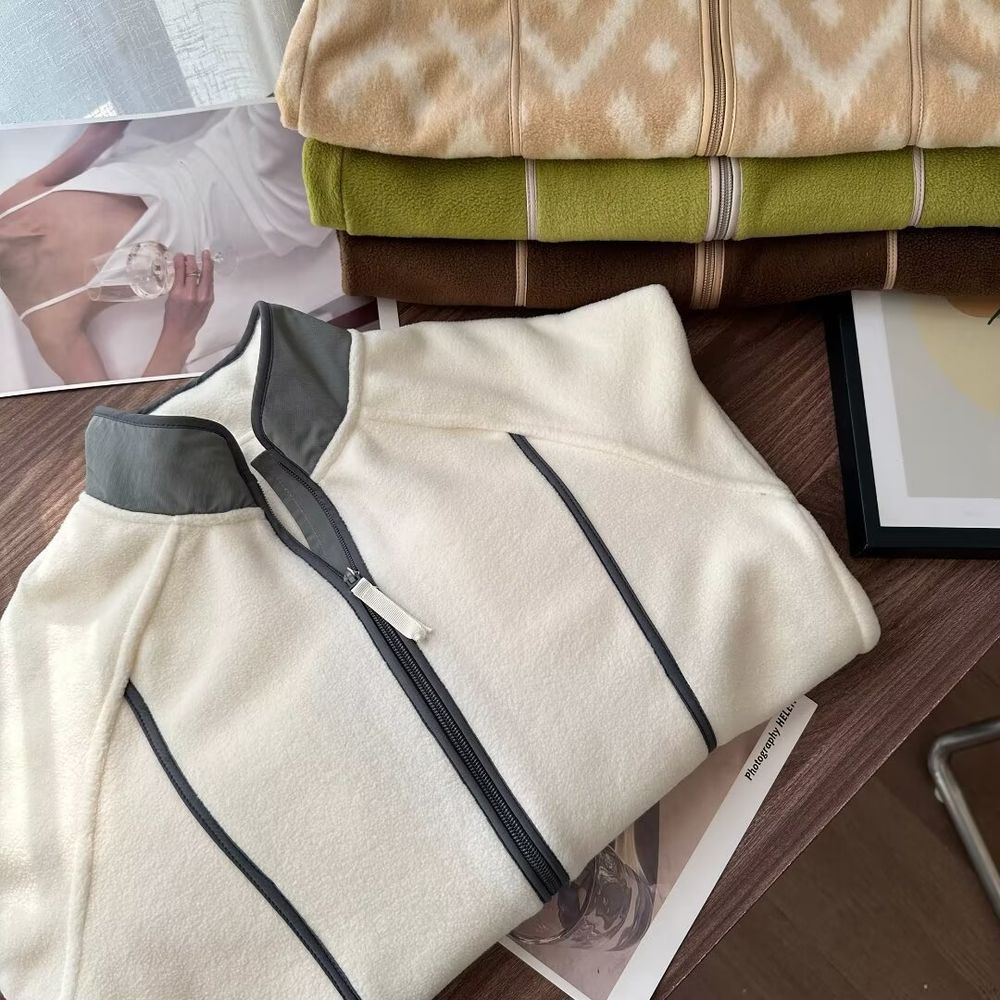 Casual Loose Stand Collar Jacket Women Zipper Cardigan Long Sleeve Jacket Top